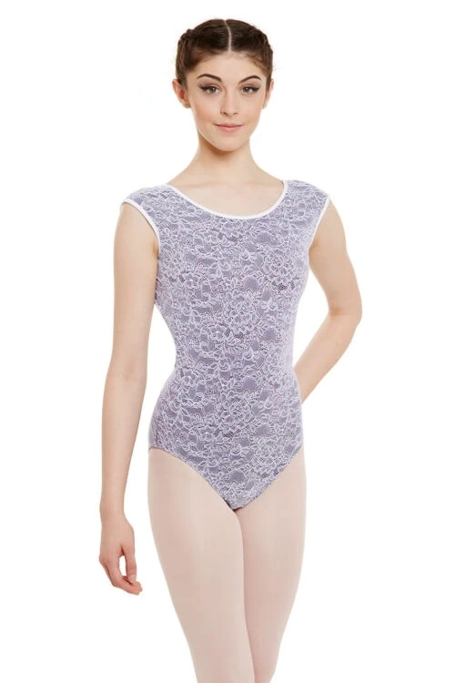Cap Sleeve Leotard with Scalloped Lace Yoke - RDE-1905LC