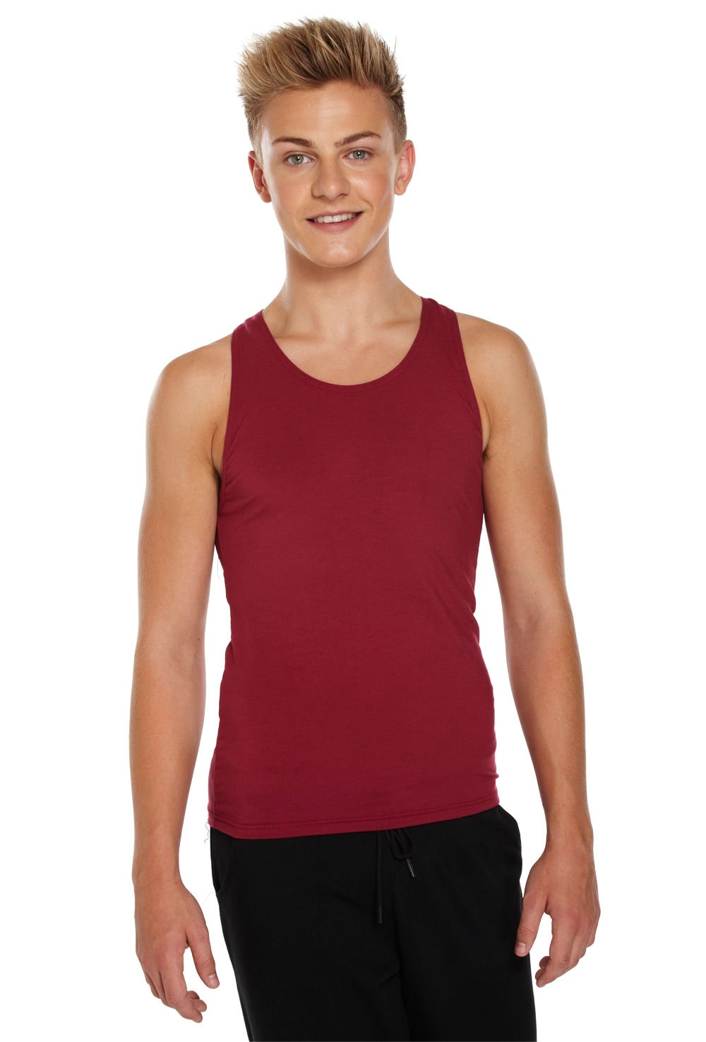 Mens tank vest with racer back. 91% cotton 9% spandex. Required by Reynolds Performing Arts male students.
