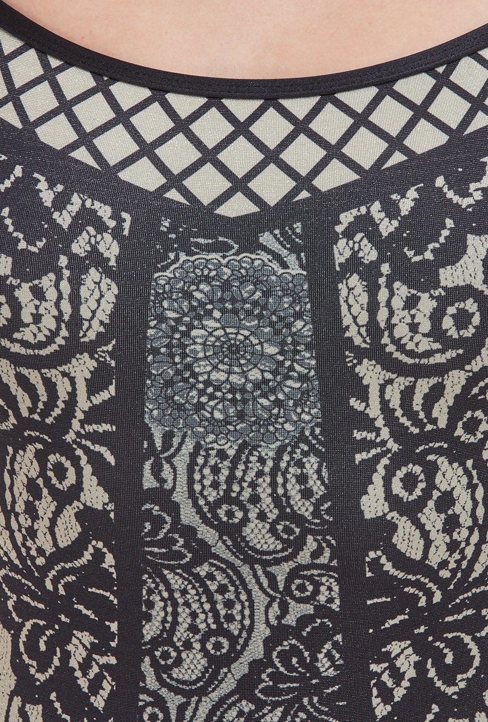 • Feminine corset print front and fishnet print back