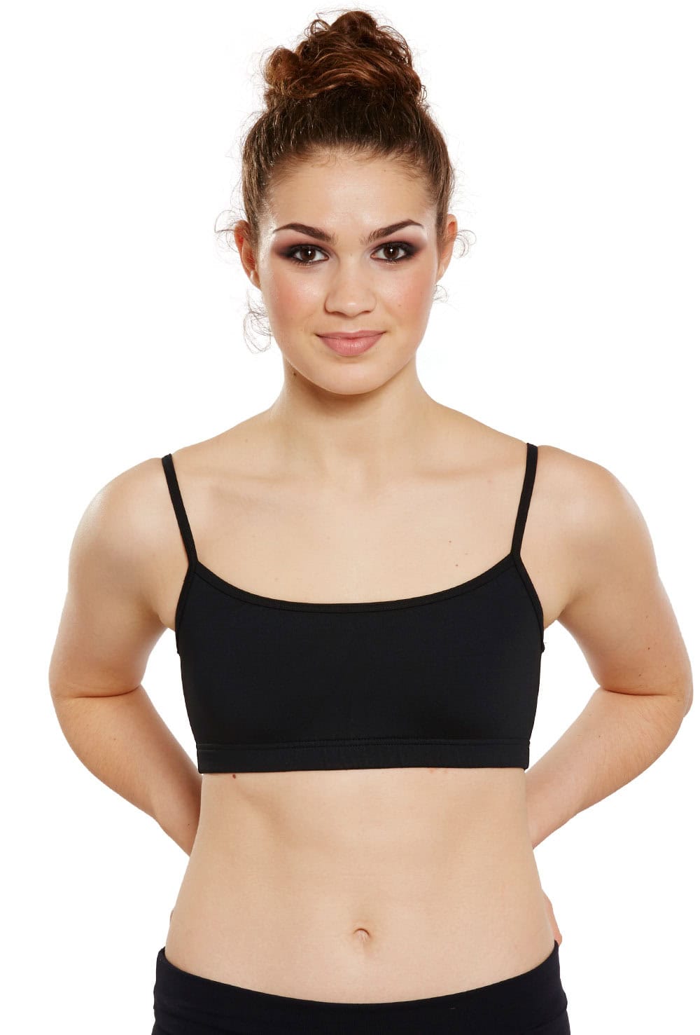 Ladies camisole bra top with full modesty lining. 90% nylon 10% spandex.