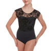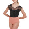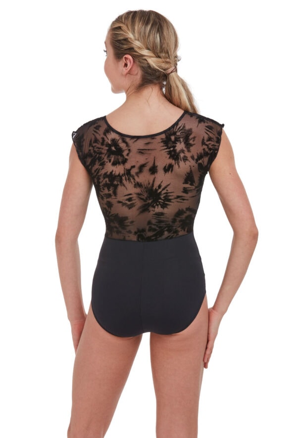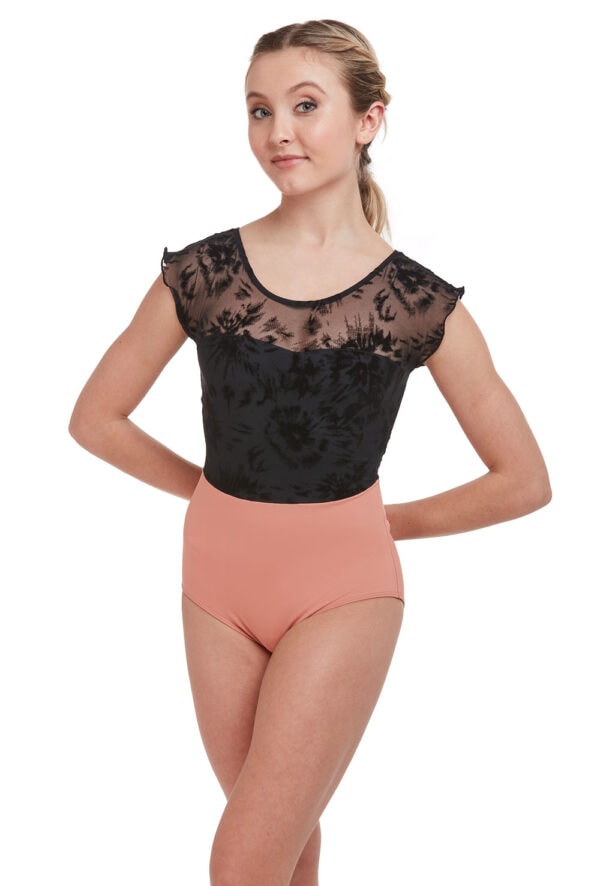 Intermezzo’s cap sleeve leotard has a plain base delightfully topped with a sweetheart silhouette overlaid with a flocked mesh upper bodice. The higher backline makes it a good choice for pas de deux and other partnering work. Match it up with Intermezzo Giselle 2 or Paisley Print skirts.