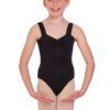 A great basic leotard with wide supportive straps and flattering front bodice contouring seams.