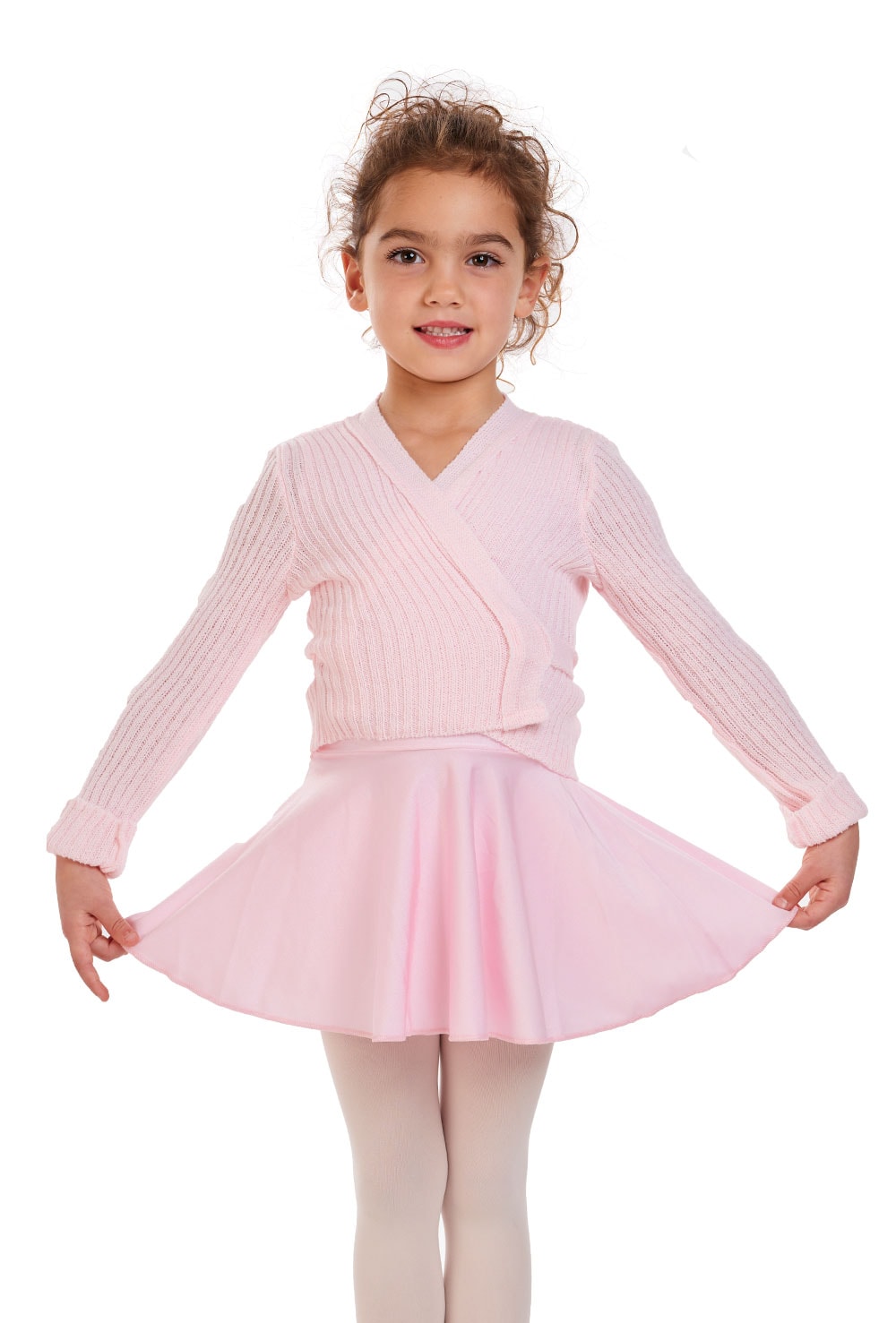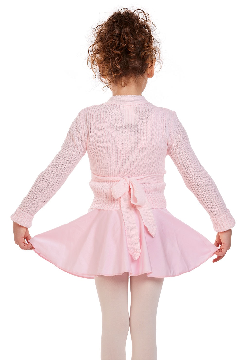 Cropped rib knit crossover cardigan. Keep little dancers toasty warm in luxury with this chunky rib knit wrap from Intermezzo.