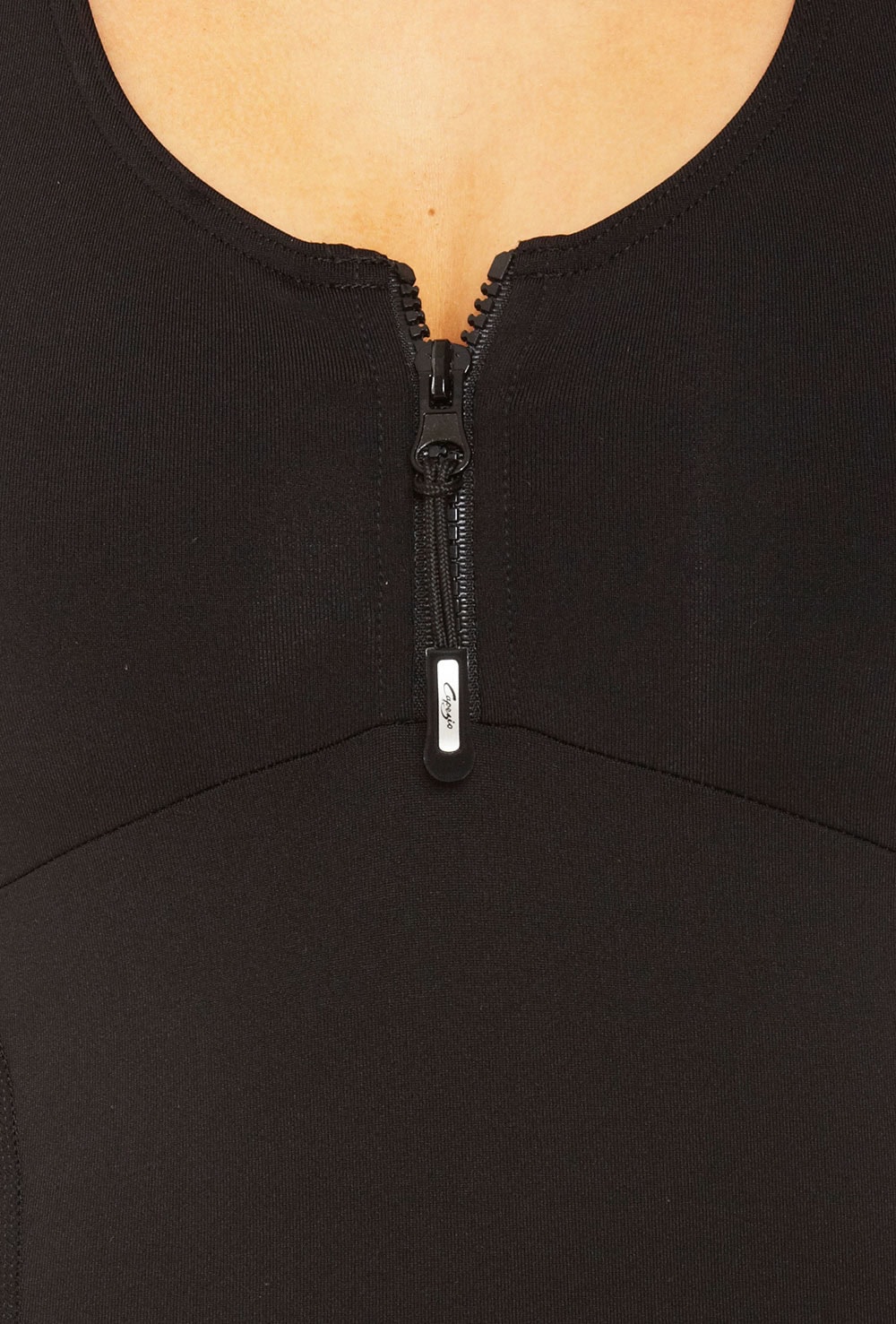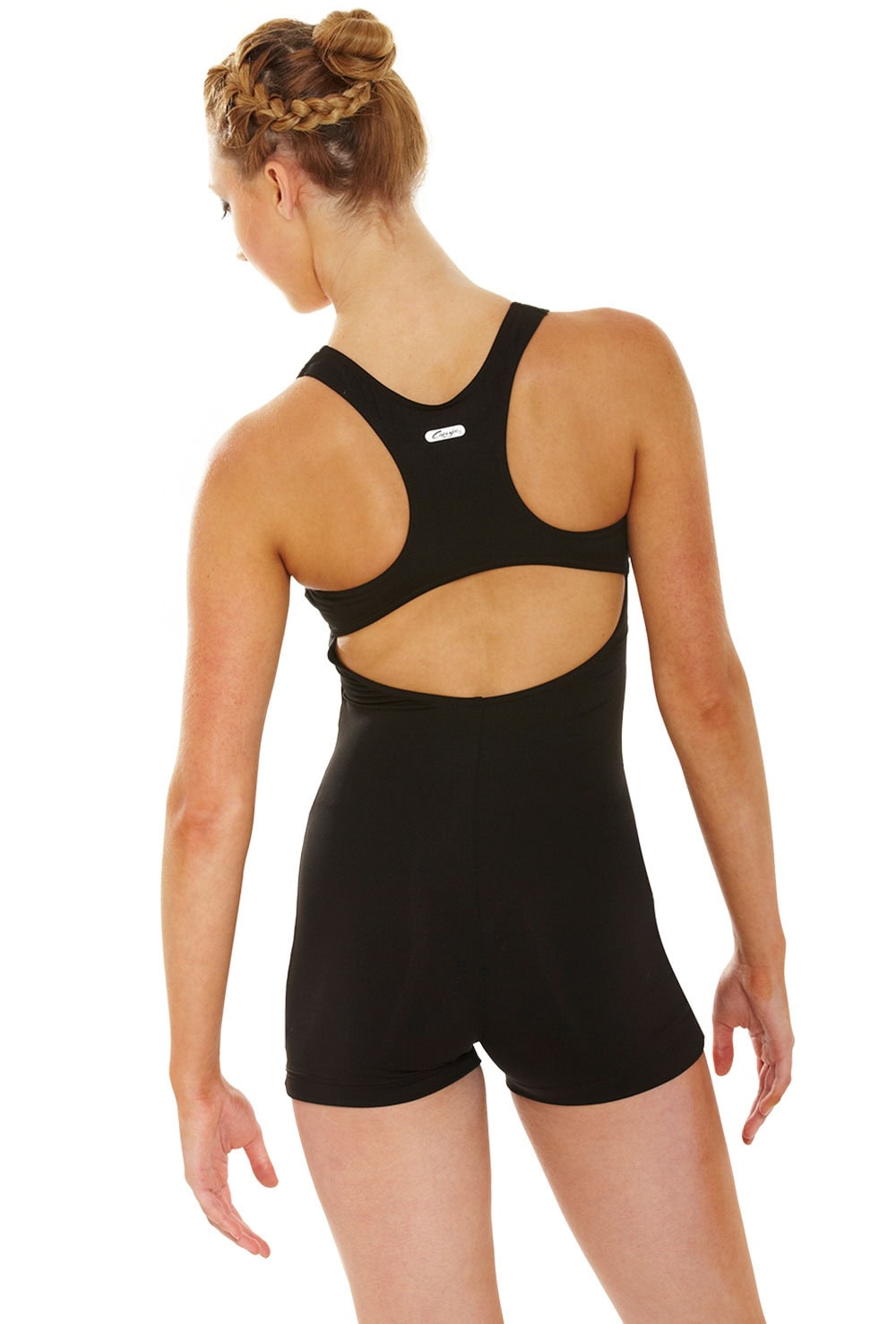 From Capezio’s Dance Active Collection, this hot pant unitard has an empire bust seam, front zip opening and back aperture. Features bra modesty lining. Made of quick drying performance material 88% polyester 12% spandex.