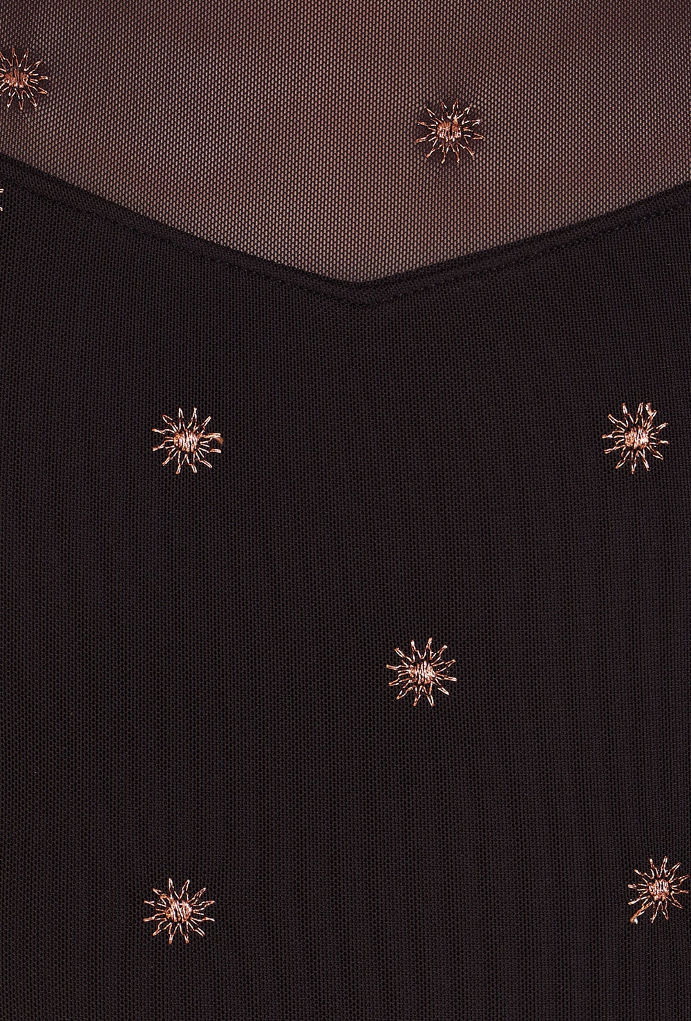 • Copper star embroidered mesh overlay