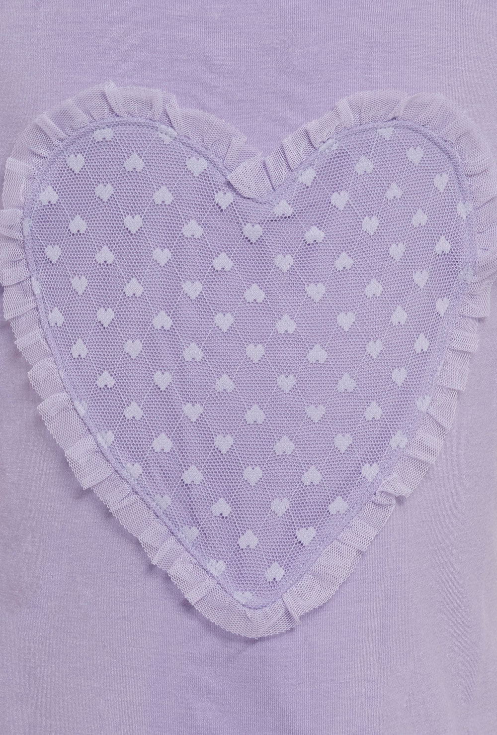 Girls T-shirt with sheer mesh applique heart with ruffle edge. Coordinates with Bloch’s cute heart mesh seasonal range. 47% viscose 47% polyester 6% spandex.