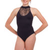 Elevate your studio style with this elegant halter leotard with pretty lace detail