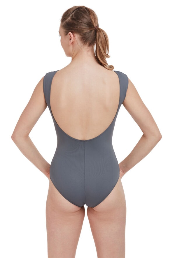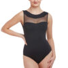 Intermezzo’s tank leotard creates drama with it’s high mesh neck front and contrasting low plunge back.