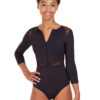 3/4 Sleeve Flocked Mesh Leotard with Zip - 31538
