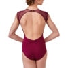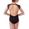 The tone on tone mix of fabrics give this leotard a sophisticated look. The stunning O-back aperture is finished off delightfully with a ruche detail at the base
