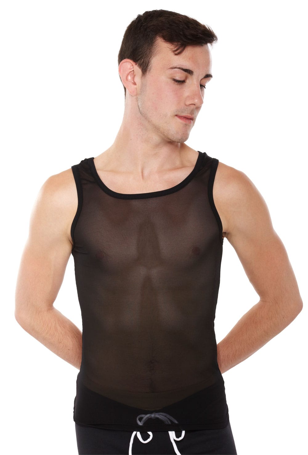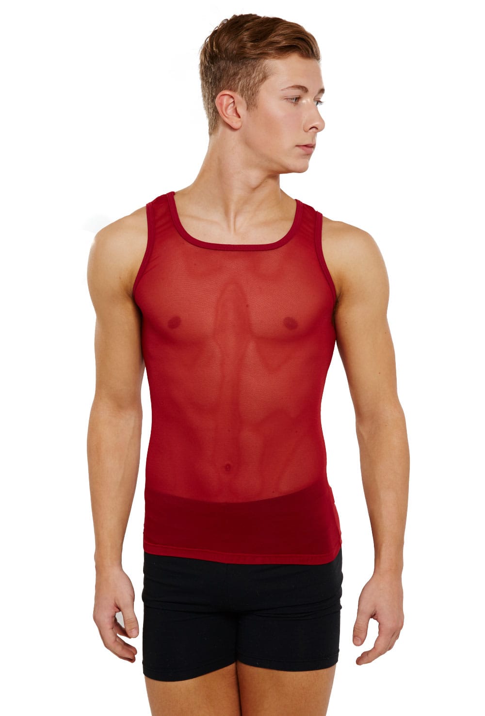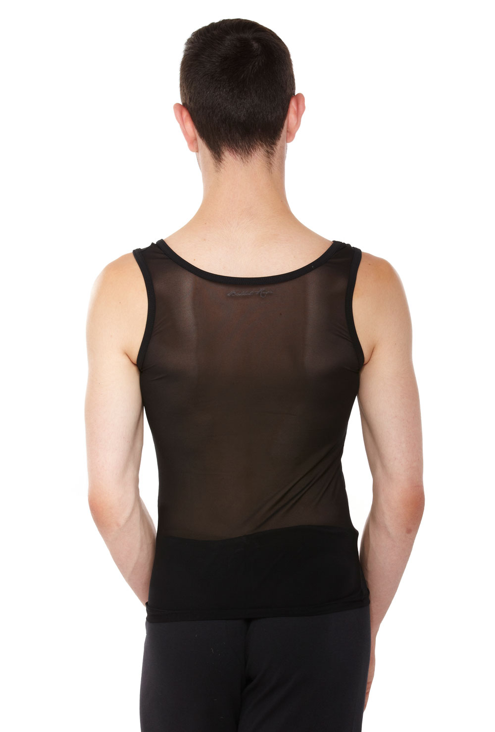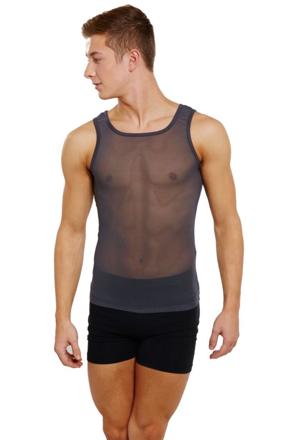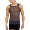Men’s semi-opaque mesh vest with scoop neck. 94% polyamide 6% elastane.