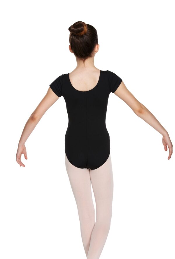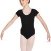 Classic and simple girls leotard with cap sleeves. Features full front modesty lining. 88% nylon 12% spandex.