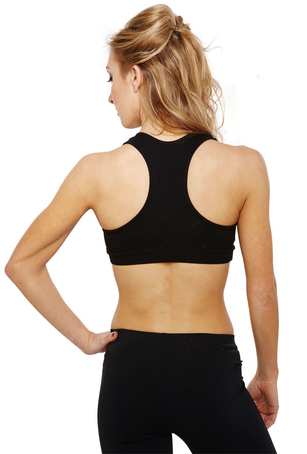 Racer back bra top with full front modesty lining. 90% cotton 10% elastane.