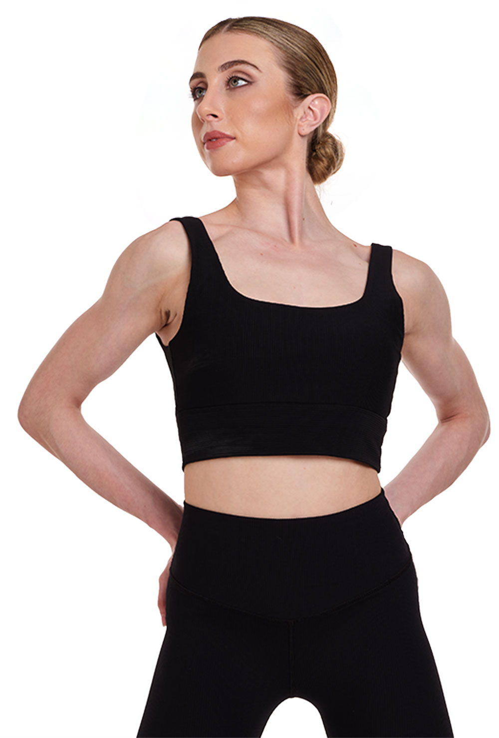 Made of super support ribbed fabric and worthy of the toughest workout, this gym style crop top coordinates with Bloch’s (ZC01901) 7/8 Length Ribbed Gym Leggings