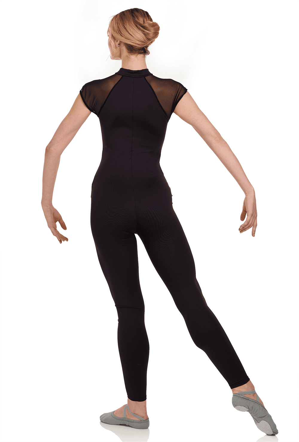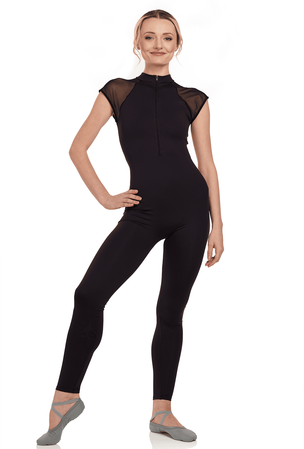 A new addition to our bestselling Scuba Mesh range, this gorgeous unitard has raglan mesh sleeves that give a lovely angle to the shape of the shoulders. Wear the zip up or down depending on your mood!