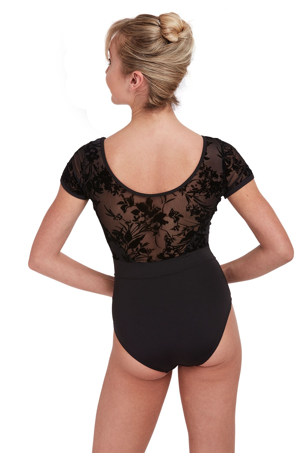 Turn heads in the studio with this gorgeous Bloch leotard that has a feminine twist with its gorgeous wild flower flocked mesh upper bodice.