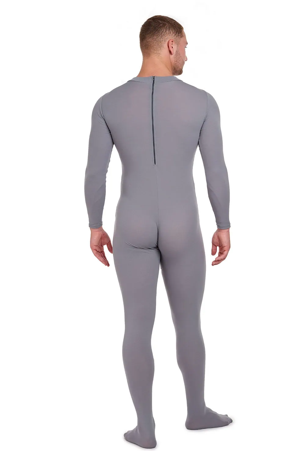 Unisex full body unitard with high neck, long sleeves, full foot and zip opening at back.