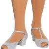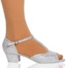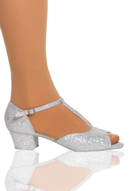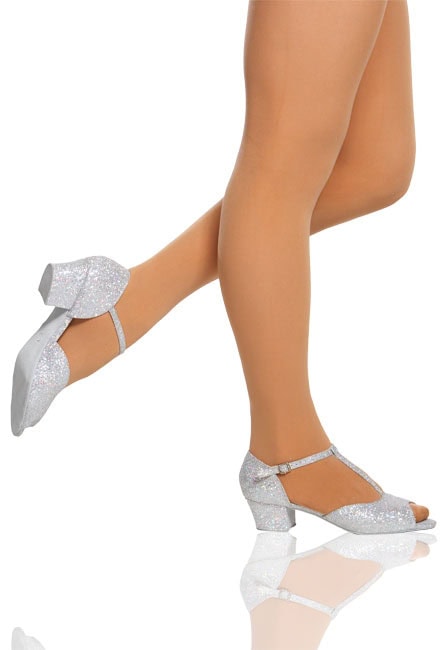 Glitter T-bar sandal with 1.5″ cuban heel, non-slip suede sole and man-made holographic upper. Great value!