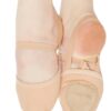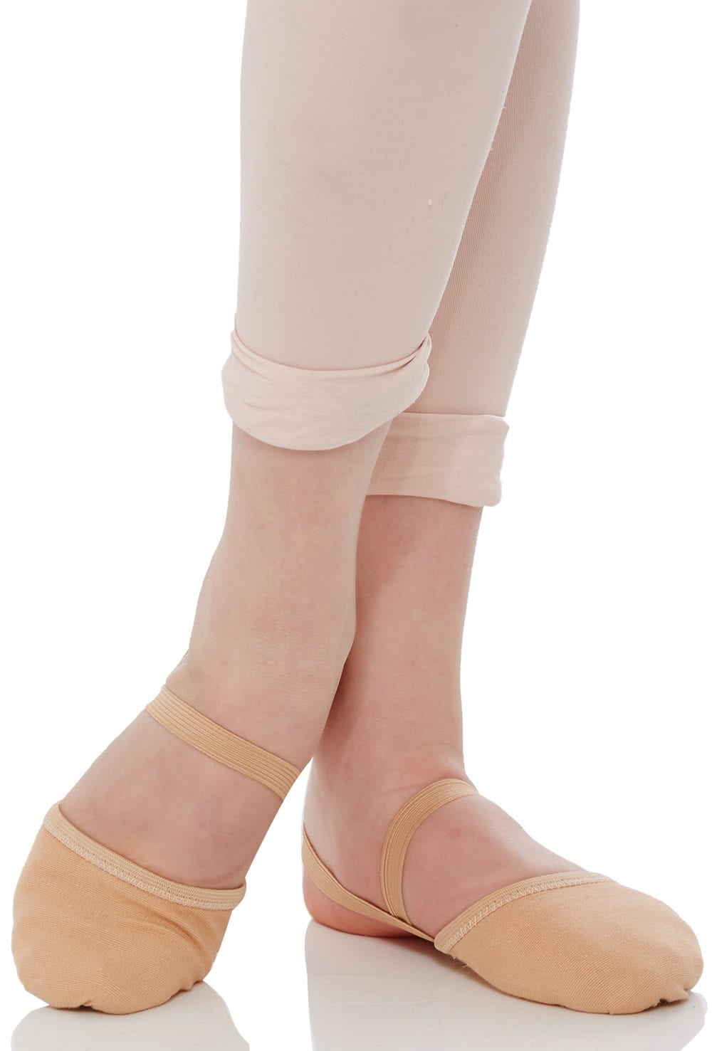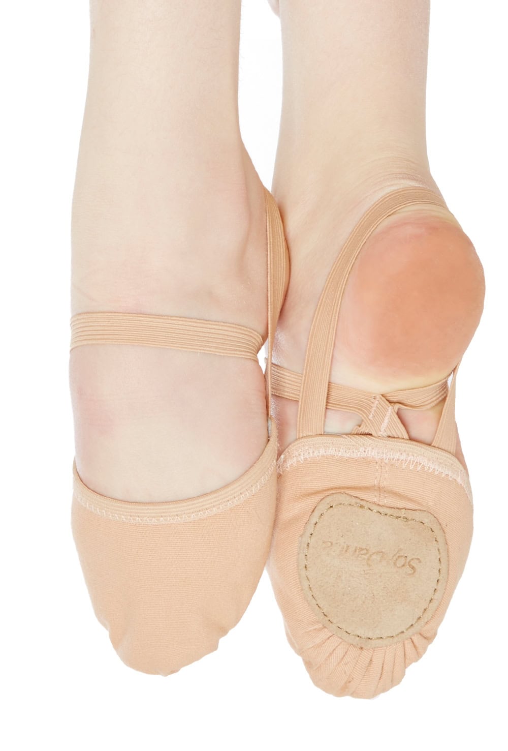 Canvas gymnastic style dance slipperette with non-slip suede sole patch and soft elastic straps.