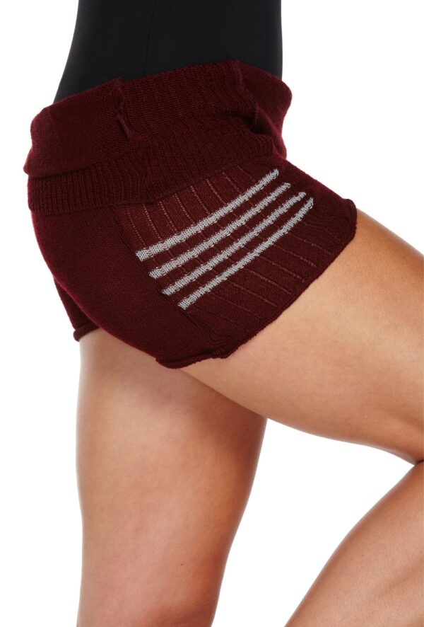 Knitted hot pants with ribbed side panels with contrast stripe detail. 50% wool 50% acrylic.