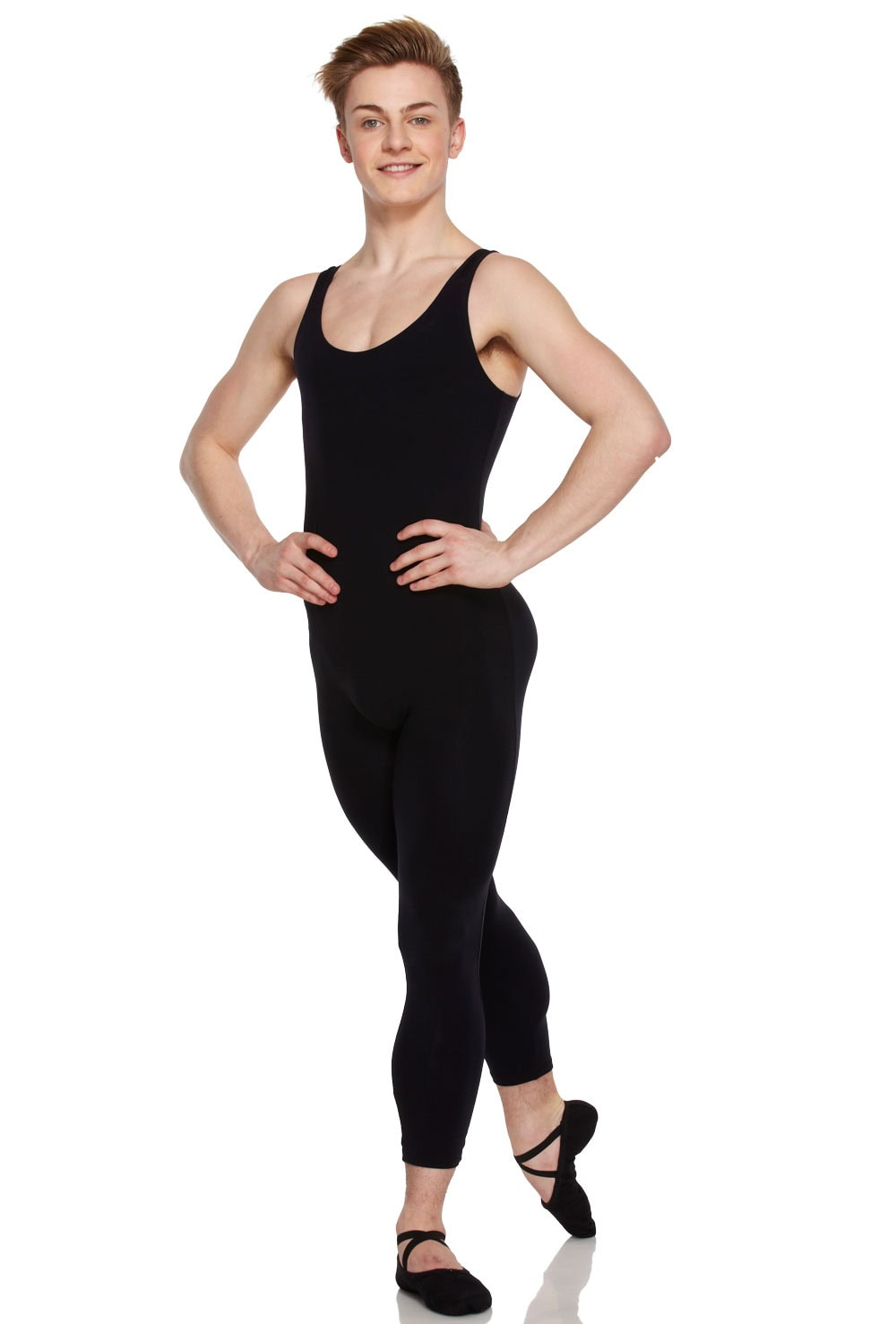 Men’s tank unitard with round neck and cropped legs. Made from ultra durable and colourfast supplex. 88% supplex 12% lycra.