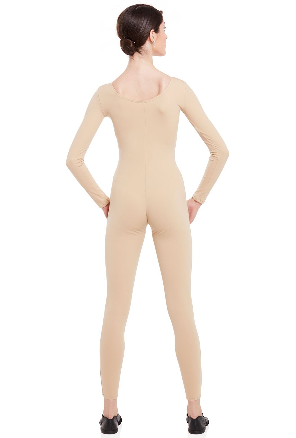 Long sleeve basic matte finish unitard. 90% nylon 10% spandex.